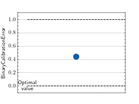 >>> from torch import rand, randint >>> # Example plotting a single value >>> from torchmetrics.classification import BinaryCalibrationError >>> metric = BinaryCalibrationError(n_bins=2, norm='l1') >>> metric.update(rand(10), randint(2,(10,))) >>> fig_, ax_ = metric.plot()