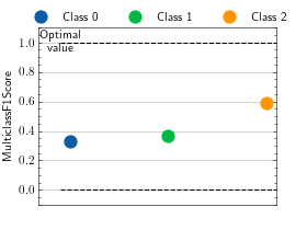 >>> from torch import randint >>> # Example plotting a single value per class >>> from torchmetrics.classification import MulticlassF1Score >>> metric = MulticlassF1Score(num_classes=3, average=None) >>> metric.update(randint(3, (20,)), randint(3, (20,))) >>> fig_, ax_ = metric.plot()
