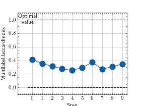 >>> # Example plotting multiple values >>> from torch import rand, randint >>> from torchmetrics.classification import MultilabelJaccardIndex >>> metric = MultilabelJaccardIndex(num_labels=3) >>> values = [ ] >>> for _ in range(10): ... values.append(metric(randint(2, (20, 3)), randint(2, (20, 3)))) >>> fig_, ax_ = metric.plot(values)