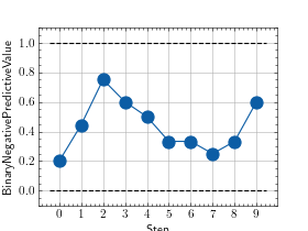 >>> from torch import rand, randint >>> # Example plotting multiple values >>> from torchmetrics.classification import BinaryNegativePredictiveValue >>> metric = BinaryNegativePredictiveValue() >>> values = [ ] >>> for _ in range(10): ... values.append(metric(rand(10), randint(2,(10,)))) >>> fig_, ax_ = metric.plot(values)