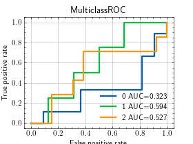 >>> from torch import randn, randint >>> from torchmetrics.classification import MulticlassROC >>> preds = randn(20, 3).softmax(dim=-1) >>> target = randint(3, (20,)) >>> metric = MulticlassROC(num_classes=3) >>> metric.update(preds, target) >>> fig_, ax_ = metric.plot(score=True)