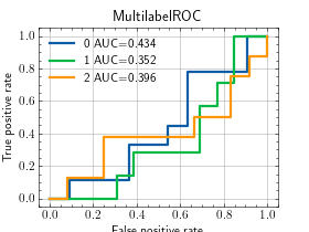 >>> from torch import rand, randint >>> from torchmetrics.classification import MultilabelROC >>> preds = rand(20, 3) >>> target = randint(2, (20,3)) >>> metric = MultilabelROC(num_labels=3) >>> metric.update(preds, target) >>> fig_, ax_ = metric.plot(score=True)