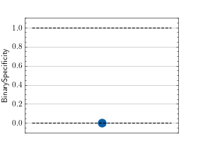 \[\text{Specificity} = \frac{\text{TN}}{\text{TN} + \text{FP}}\]Where \(\text{TN}\) and \(\text{FP}\) represent the number of true negatives and false positives respectively. The metric is only proper defined when \(\text{TN} + \text{FP} \neq 0\). If this case is encountered a score of 0 is returned.