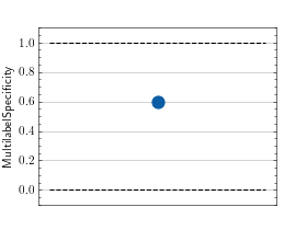 \[\text{Specificity} = \frac{\text{TN}}{\text{TN} + \text{FP}}\]Where \(\text{TN}\) and \(\text{FP}\) represent the number of true negatives and false positives respectively. The metric is only proper defined when \(\text{TN} + \text{FP} \neq 0\). If this case is encountered for any label, the metric for that label will be set to 0 and the overall metric may therefore be affected in turn.