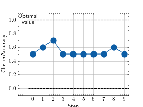 >>> # Example plotting multiple values >>> import torch >>> from torchmetrics.clustering import ClusterAccuracy >>> metric = ClusterAccuracy(num_classes=4) >>> values = [ ] >>> for _ in range(10): ... values.append(metric(torch.randint(0, 4, (10,)), torch.randint(0, 4, (10,)))) >>> fig_, ax_ = metric.plot(values)